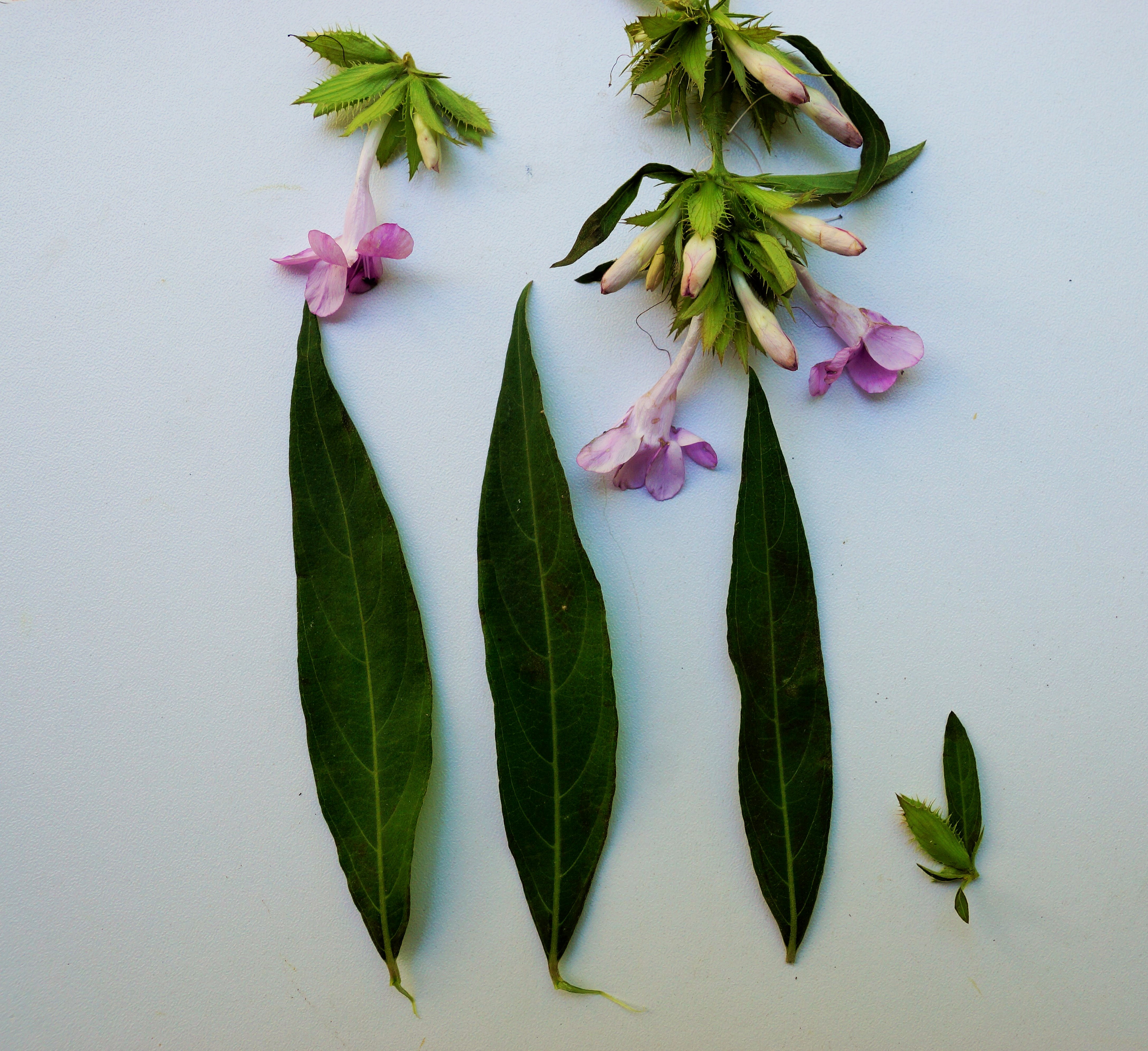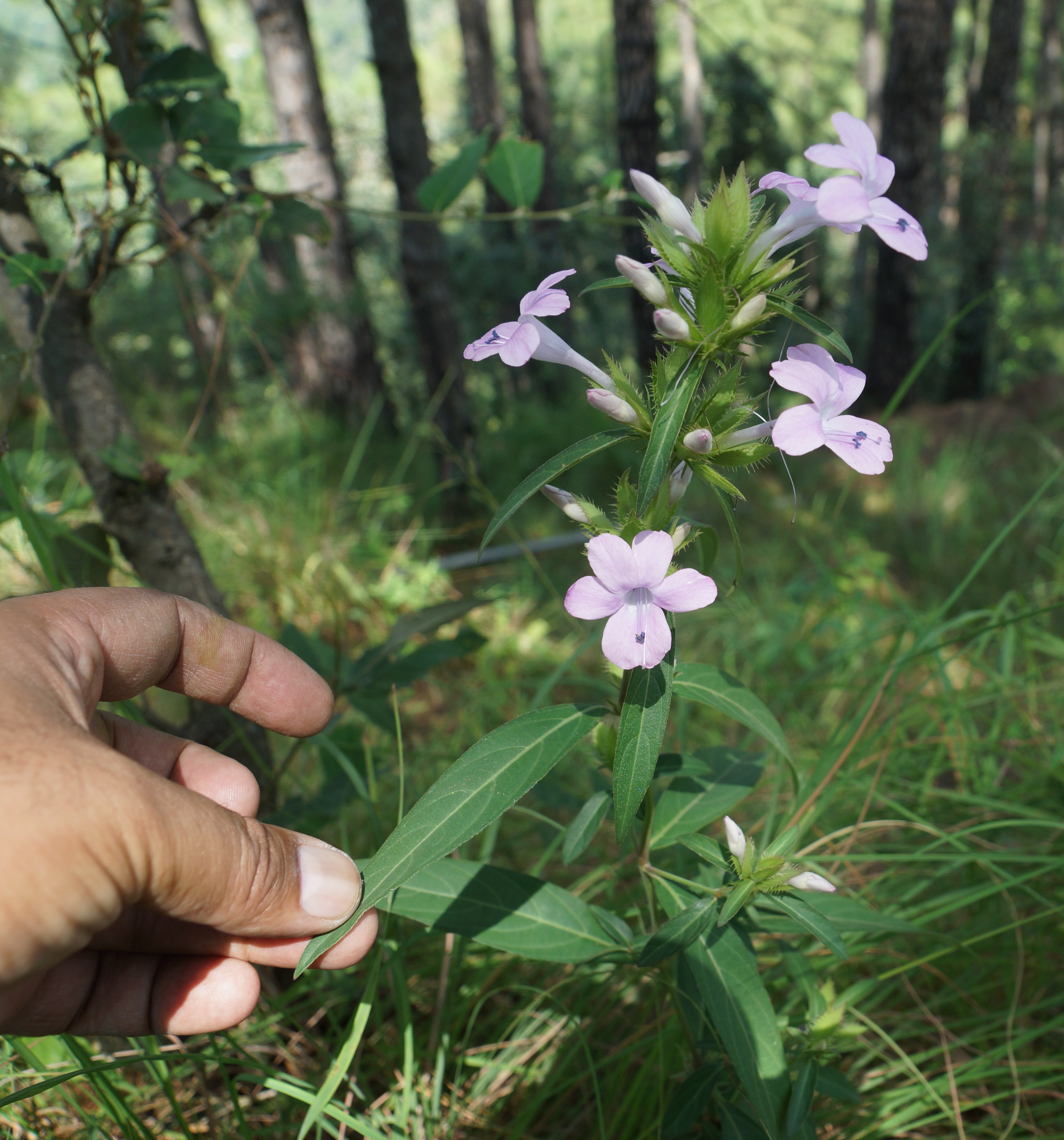 Leaves simple elliptic-oblong to lanceolate, hairy on both sides. Inflorescence 1-5 flowered. Inflorescence in axillary or terminal spikes. Flower actinomorphic, purple blue, pink or white. Corolla bell-shaped. Fruit a capsule.4-seeded.